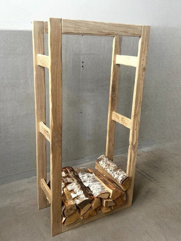 Ett möbelstycke med karaktär och närvaro – Ekställ 120 cm är ett funktionellt och stilrent förvaringsställ i massiv ek, skapat för att smälta in men samtidigt stå ut. Med sitt generösa höjdformat blir det både ett praktiskt vedställ och en snygg inredningsdetalj. Perfekt vid eldstaden, i hallen eller i ett rum där naturmaterial får tala fritt.