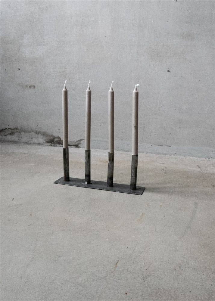 Ljusstake 15 cm i rått stål – minimalistisk hållare för fyra ljus