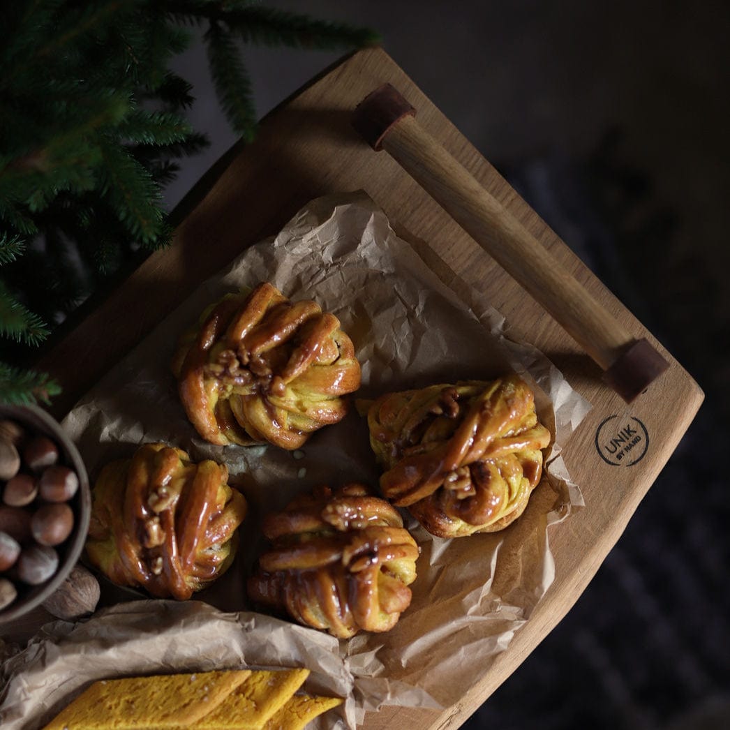 De rundade hörnen och mjuka kanterna gör den skön att jobba med – oavsett om du hackar grönsaker eller bär ut ost och vin till altanen. Brädan tillverkas för hand i norra Europa, och eftersom produktionen sker i samarbete med människor med särskilda behov bär varje exemplar på något större än bara form och funktion.